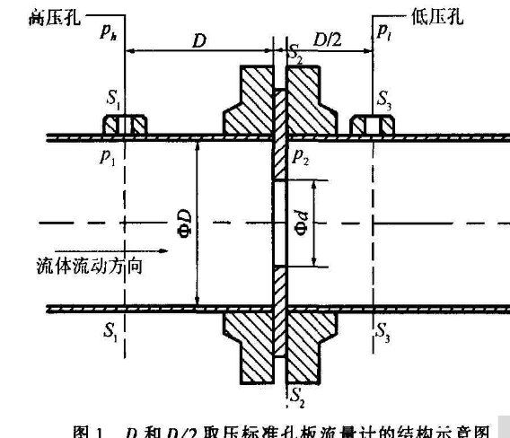 圖2孔板流量計流場特性示意圖3標準孔板流量計的D和D/2取壓結構示意